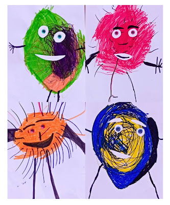 Έχοντας ως στόχο μας την ενθάρρυνση, την αποδοχή κάθε εικαστικού πονήματος των μαθητών/μαθητριών μας, και αξιοποιώντας μία ιδέα που βρήκαμε στην ομάδα «Παιδικός πλανήτης» του Facebook (ανάρτηση 23/09/2022 με πηγή το Pinterest), καθοδηγήσαμε τα παιδιά να δημιουργήσουν τα δικά τους «ανθρωπάκια», αξιοποιώντας τα «μουντζουρογραφήματά» τους είτε μεμονωμένα είτε συνεργαζόμενα με κάποιον/κάποια φίλο/φίλη τους.