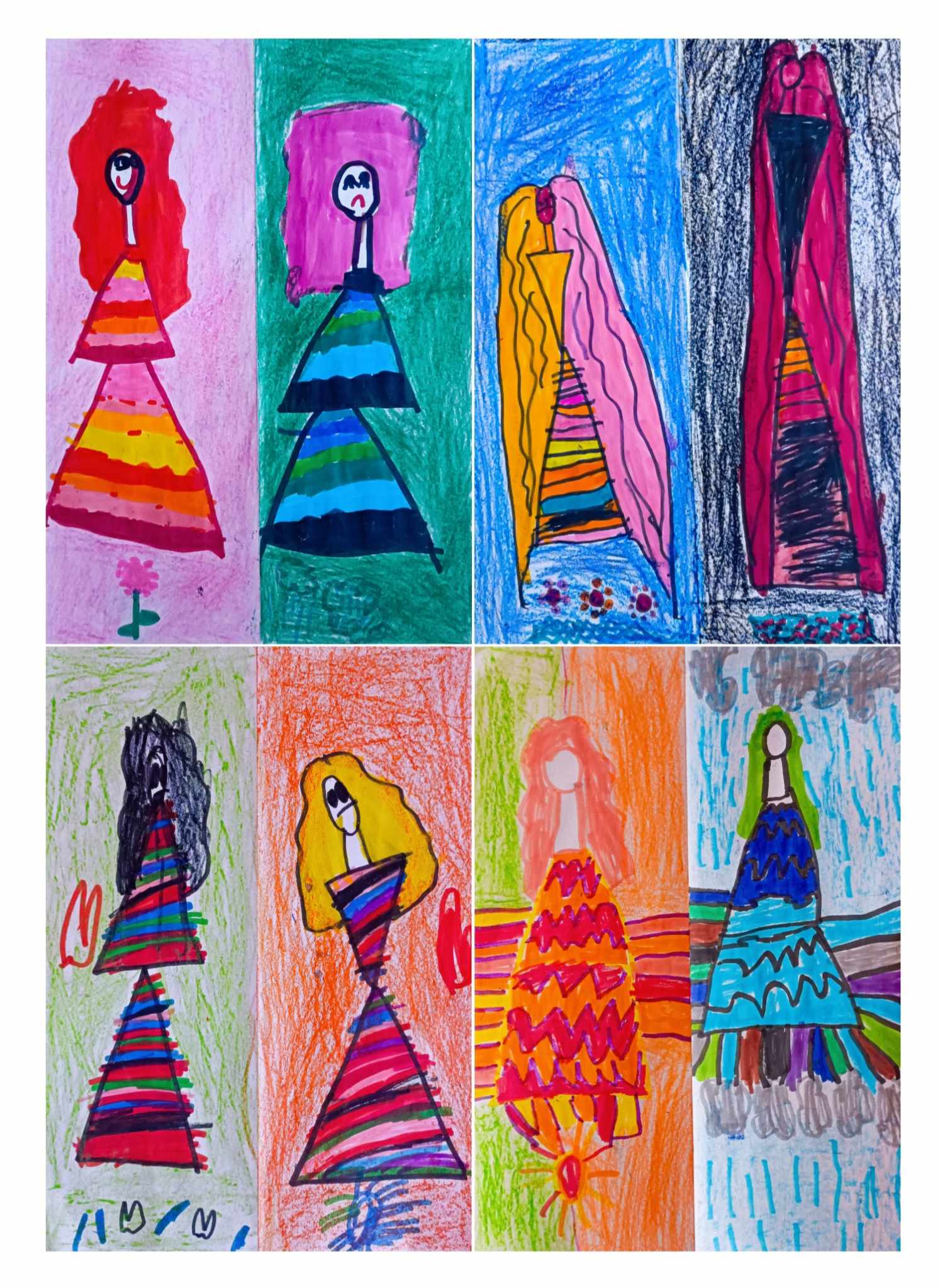 Κατά τη συνάντησή μας με την Β΄ τάξη, σχεδιάζουμε να παρουσιάσουμε τον σχετικό με τις «Γυναίκες του Μάρτη» θρύλο μέσω μίας δραματοποίησης, που θα περιλαμβάνει αφήγηση από την Παιδαγωγό, διάδραση με τους μαθητές/μαθήτριες και θεατρική αναπαράσταση αυτού από ομάδα νηπίων. Επιπρόσθετα, έχοντας απεικονίσει σε ατομικά ιχνογραφήματα τις γυναίκες του Μάρτη, θα δωρίσουμε τα έργα στο Δημοτικό Σχολείο, ώστε σε βάθος χρόνου να συμπεριληφθούν στην κοινή Εικαστική Έκθεση που φιλοδοξούμε να υλοποιήσουμε. Οι δημιουργίες που ετοιμάσαμε είναι οι ακόλουθες: